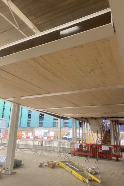 - The installation of a CLT mezzanine floor in Isleworth for Hess, using our in-house lifting team to lift pre-finished panels into steelwork.